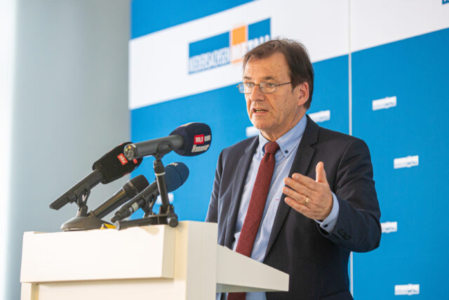 „Um es ohne Umschweife zu sagen: Die Lage ist ernst und in Teilen unserer Industrie außerordentlich kritisch“: Mit diesen Worten umschreibt Dr. Volker Schmidt, Hauptgeschäftsführer der 14 Arbeitgeberverbände im Haus der Industrie, die aktuelle Situation der niedersächsischen Wirtschaft. Im Frühjahr 2022 hatte Schmidt die Ergebnisse der Konjunkturumfrage vorgestellt, die die Verbände unter mehr als 1000 Mitgliedsbetrieben durchgeführt haben. Das Ergebnis offenbart für nahezu alle Bereiche der Branche eine prekäre Situation. „Umso wichtiger scheint mir zu sein, dass die Politik die Situation nicht durch fehlerhafte Entscheidungen weiter verschlimmert. Es geht jetzt vor allem um Sicherheit: Planungssicherheit, Versorgungssicherheit, Liquiditätssicherung und Beschäftigungssicherung“, sagt Schmidt.
